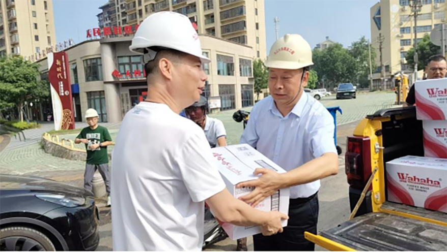 一份份解暑物資,一句句貼心叮囑,為奮戰(zhàn)在高溫一線的員工送去了組織的關(guān)懷與夏日的清涼,鼓舞了大家的士氣和干勁,現(xiàn)場(chǎng)的施工班長接過慰問品說道:“感謝公司關(guān)心,我們一定按時(shí)按質(zhì)完成任務(wù)!”
